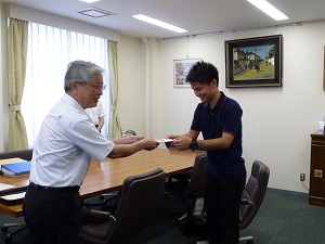 7月24日(金)、学部長室において経営システム学科・武村昂紀さんに奨励金が授与されました。