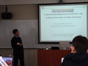 2018年3月1日(木)~3日(土)に香川大学幸町南キャンパス又信記念館において、2018 Kagawa International Symposium "Recent Developments in Statistics and Econometrics"が開催されました。経済学部長佐藤忍教授、主催者の姚峰教授と早稲田大学谷口正信教授の開会の辞で始まり、3日間にわたり8セッション19タイトルの学術講演で統計学と計量経済学における最新の研究成果が報告されました。その中には、世界的に知名度が高い研究者10数名の学術講演もあり、大盛況の3日間でした。今回の国際シンポジウムでは、日本の他に、アメリカ、中国、台湾、香港、ノルウェイ、スペイン、ベルギーなどの国と地域から多くの研究者が参加され、本学の教員及び学生との研究教育交流ができました。