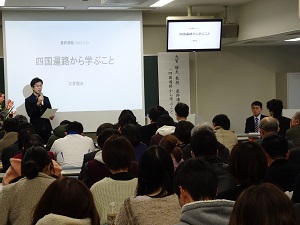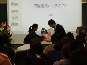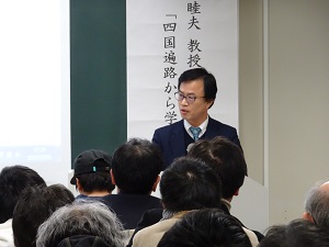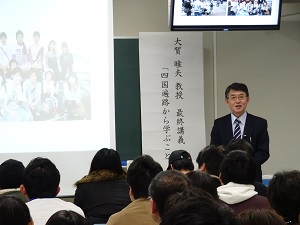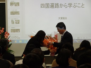 本年度定年退職されます大賀睦夫教授の最終講義「四国遍路から学ぶこと」が、2月1日(金)教育学部第412講義室で行われました。 学生・教職員の他、卒業生や一般の方も出席され、熱心に聴講されていました。