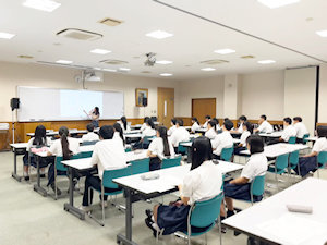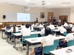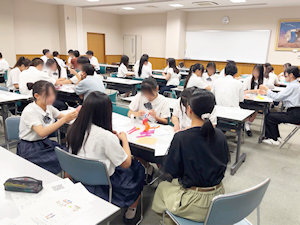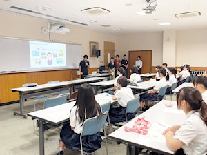 9月26日、山口ゼミ(担当:山口尚美教員)では、高大連携授業「共同の学び講座」が実施されました。参加したのは、ゼミ3年生10名と香川県立高松商業高等学校商業科2年生38名の皆さんです。
