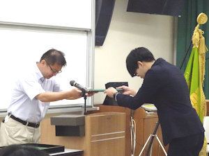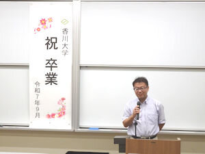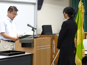 9月30日(火)に令和7年度第1学期末卒業式が行われました。 卒業生に長山学部長より学位記が授与され、励ましの言葉をいただきました。 新しい世界での活躍をお祈りいたします。