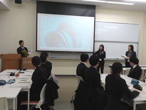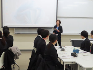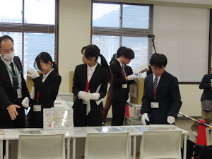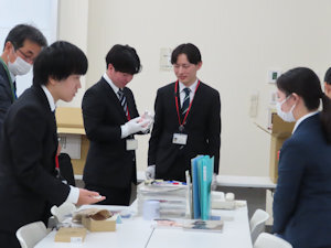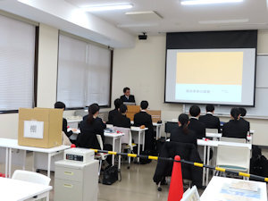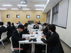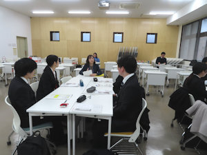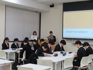 2月16日(月)の「(特)税務模擬演習」は「徴収事務」について学びました。徴収事務について講義を受けた後、講義室に設けられた株式会社国税商事「JEWELRY h」を舞台に「滞納処分」を体験しました。 続いて、税務調査について模擬調査を体験した後、国税専門官の業務について学びました。 グループに分かれて行われた座談会では様々な質問に丁寧に答えていただき、国税専門官の仕事について理解を深めることができました。