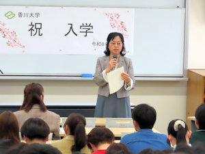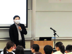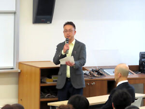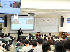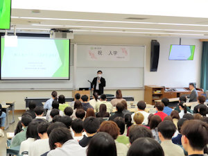 4月3日(金)13:00より、総合教育棟にて藤原教務委員長の司会による経済学部新入生ガイダンスが行われました。 青木経済学部長の挨拶に続き、教務委員による修学説明などが行われました。