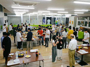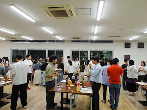 - 2024年4月17日(水)18時30分から、大学会館2階「ベーカリーカフェ空海(sorami)」において「留学生を囲む会」(経済学部国際交流委員会主催)が4年半ぶりに行われました。 4月から新しく加わった留学生8名と、すでに在学中の留学生、留学生のお世話を担当しているチューター、大学院生・学部学生・教員・学務係事務職員計約60名が出席し、楽しい国際交流の時間を過ごしました。 留学生を囲む会の様子...続きを読む