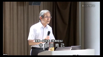 令和5年7月14日(金)、経済学部・岡田徹太郎教授を講師として、全学FD「生成AIを題材にAIの使い方について考える」が対面及びオンラインで実施されました。また後日、オンデマンド配信も